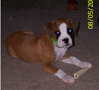Chance turned 10 weeks old this past Monday. We had him to the vet's about 2 1/2 weeks ago, and then he went this Tuesday for shots. He gained 6+ pounds in that short time. He is growing so fast that you literally swear he grows overnight.